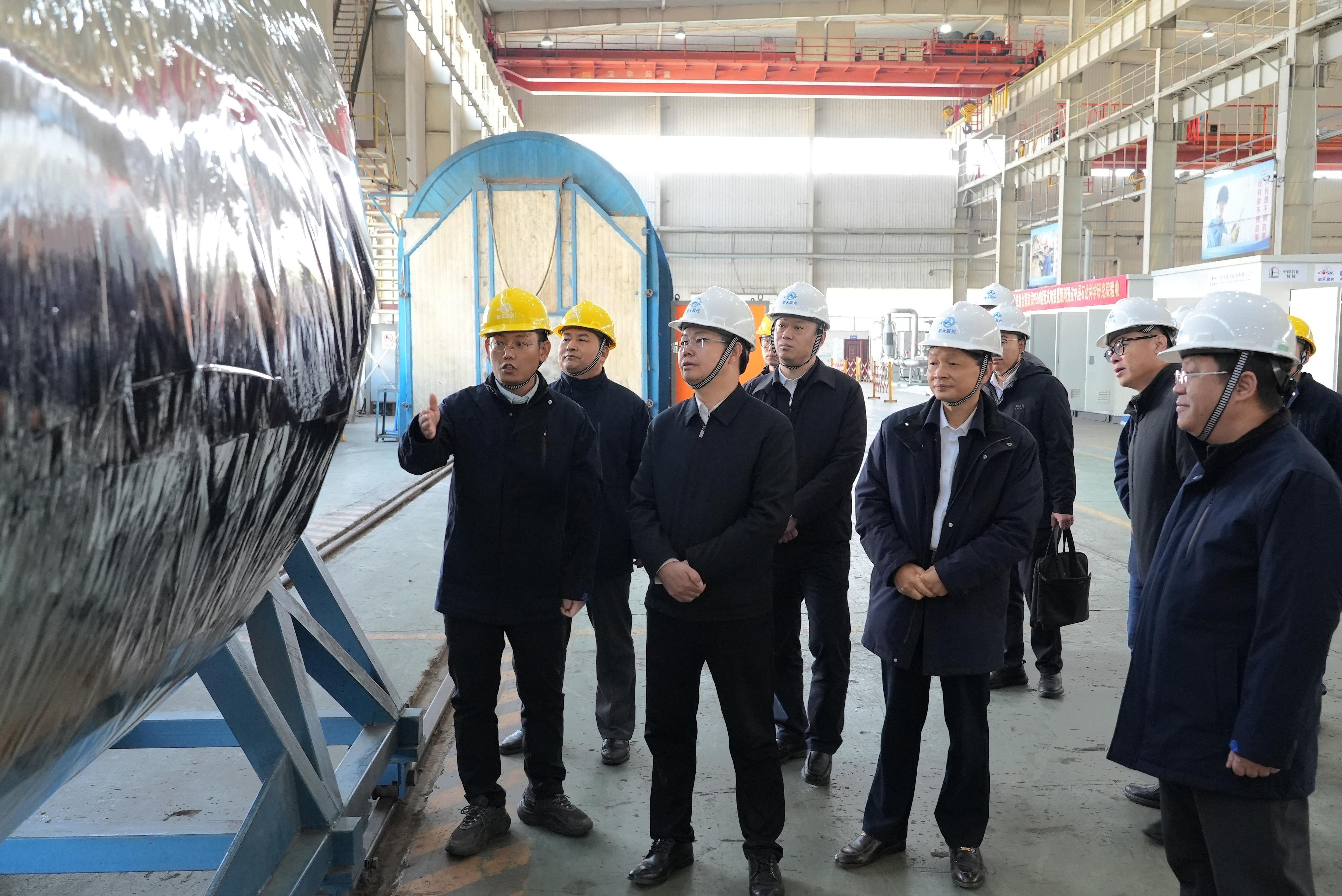 當天,陳錫明一行深入航天晨光一線生產車間和重點實驗室,現場了解航天晨光后勤保障裝備、航天防務配套以及氫能等產業發展情況。
